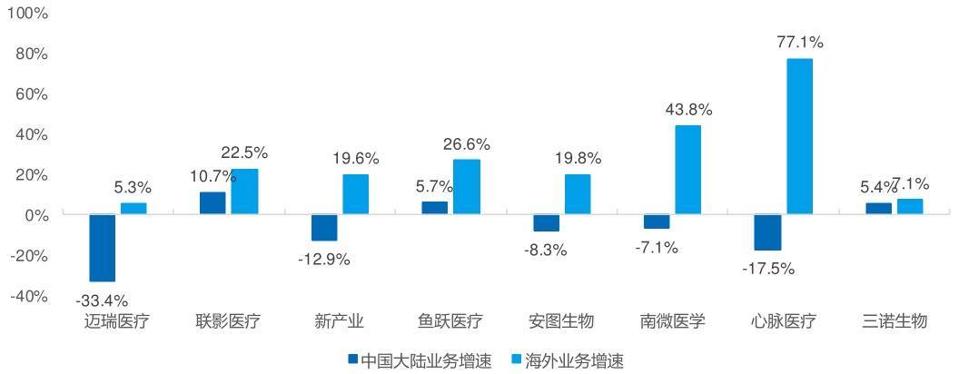医疗器械各赛道龙头企业2025H1海外业务增速高于国内