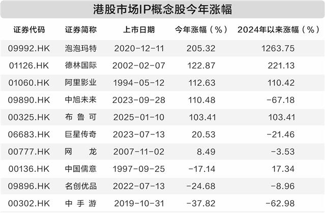 随着旗下现象级潮玩IP LABUBU热度居高不下盛宝策略,泡泡玛特股价持续攀升,不断创出历史新高,今年以来累计涨幅超过2倍。泡泡玛特的疯涨也带火了港股IP概念板块,传闻中为其代工的德林国际今年累计涨幅超1.22倍,布鲁可、阿里影业、巨星传奇等近期股价也明显异动。