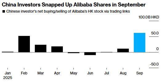 今年截至目前恒利决策,中国内地投资者在 9 月份共购入了价值 610 亿港元(约合 78 亿美元)的阿里巴巴港股(以净买入计算),这是今年以来单月买入量最大的一次。