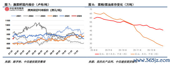 本周加拿大总理访华日程安排及澳大利亚菜籽入榨日期持续获得市场关注,叠加大宗油脂转强与大豆拍储信息刺激,菜油整体强于菜粕。预计下周菜系油粕焦点均在于加拿大总理访华是否取得经贸成果突破,以及年前澳大利亚菜籽是否顺利入榨形成供应。