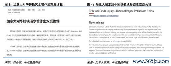 另一方面,本周加拿大接连对中国铸铁污水管和热敏卷纸采取贸易限制措施。1月7日,加拿大边境服务署对原产于或进口自中国的铸铁污水管做出双反肯定性终裁。1月8日,加拿大国际贸易法庭裁定原产于中国或从中国出口的热敏纸卷存在“双反”行为。目前来看,加拿大国内仍然存在较多的对华贸易限制措施,下周中加能否取得油菜籽和电动汽车领域的谈判突破尚有悬念。